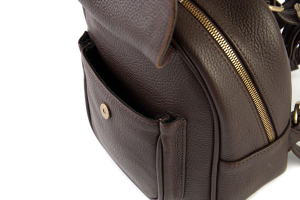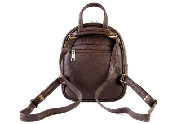 Сумка – рюкзак “Michelle” з натуральної шкіри на підкладковій тканині. Основне відділення закривається на блискавку, усередині є дві додаткові кишені: кишеня на змійці і накладна містка кишеня для телефону. Так само є дві зовнішні кишені, об’ємна передня (12*12*2см), яка закривається клапаном на магнітну кнопку і потайна кишеня на змійці, на спинці виробу. Зручний регульований плечовий ремінь (максимальний розмір 138 см), який легко перетворює рюкзак на сумку. Незважаючи на свої невеликі розміри сумка- рюкзак дуже містка. У неї поміщається усі необхідні предмети ( блокнот А5, гаманець, телефон, ключниця, повербанк (PowerBank), термокружка, паспорт і невелика косметичка) Стильна і зручна сумка трансформер, модний тренд цього сезону.