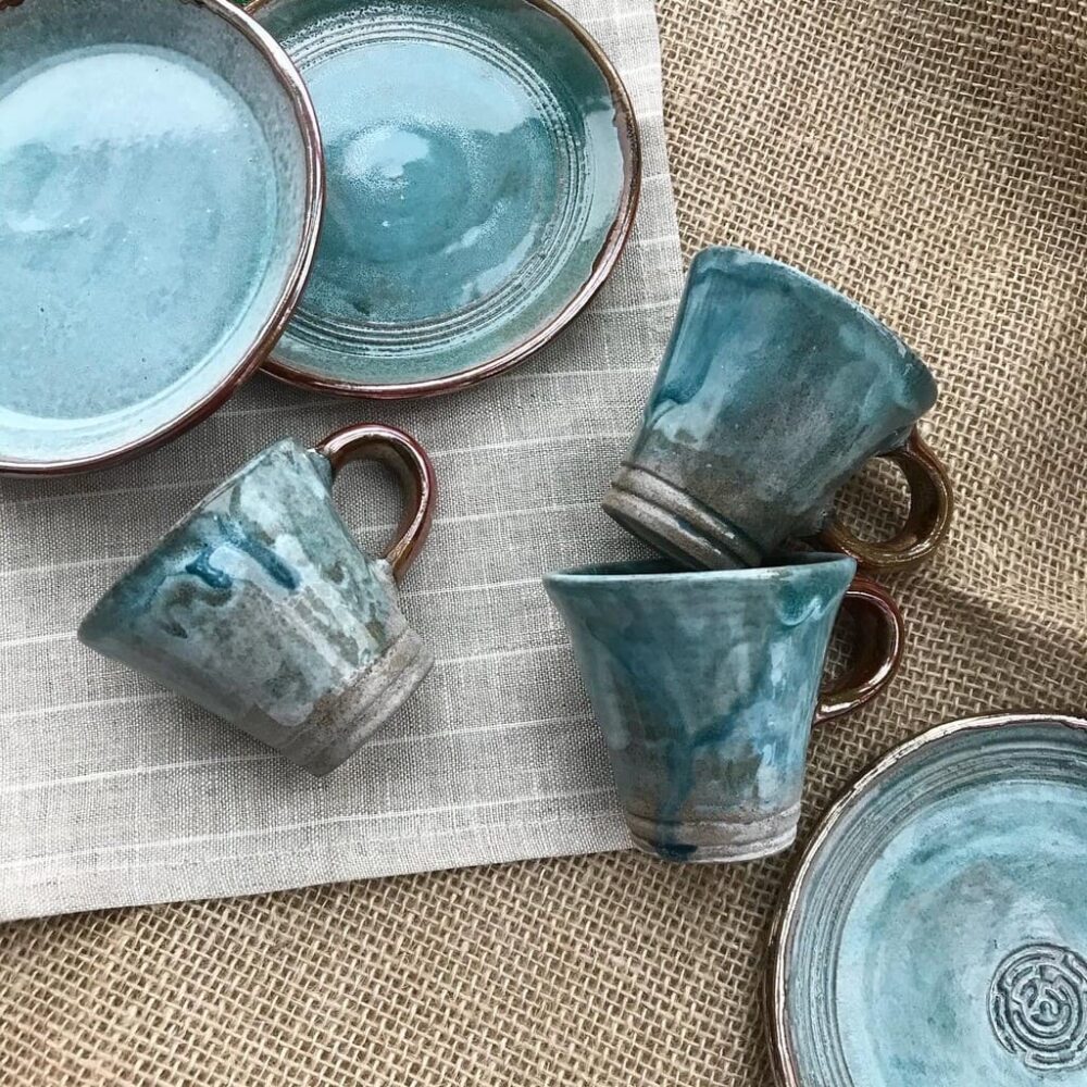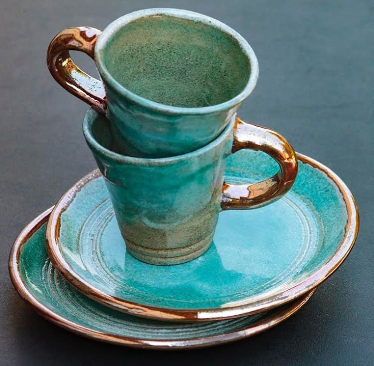 Горня з блюдцем бірюзового кольору.