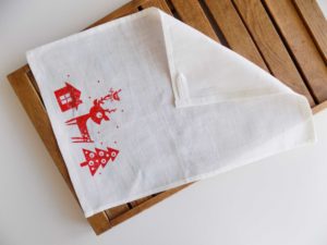 100% льон, малюнок нанесено за допомогою дерев”яних штампів та фарби для тканини.