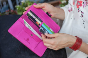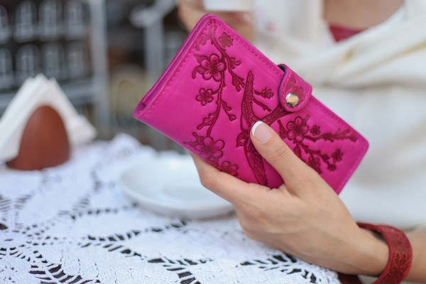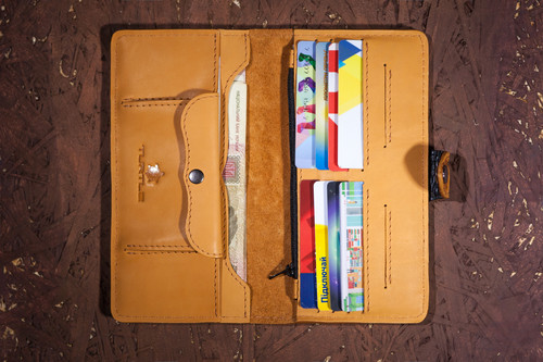 Гаманець робиться в таких кольорах: жовтий, червоний, фуксія, зелений, синій.