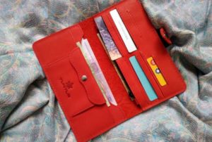 Є 3 відділення для паперових грошей, відділення для дрібниці і ще одне відділення на блискавці. У гаманці також передбачено 10 відділень для карток (в одне відділення може поміститися до 3-4 карток).